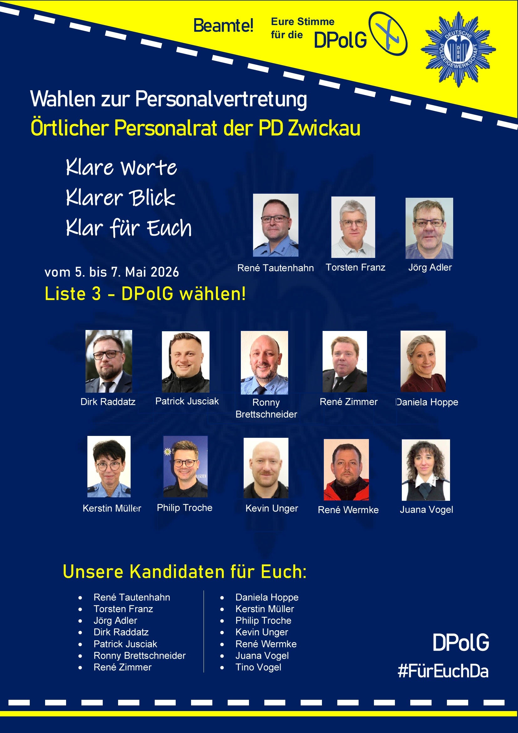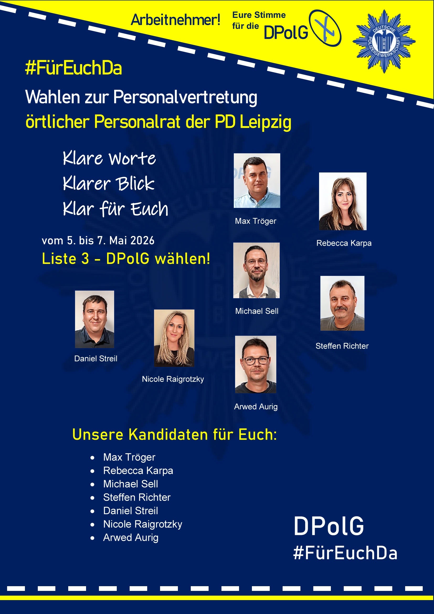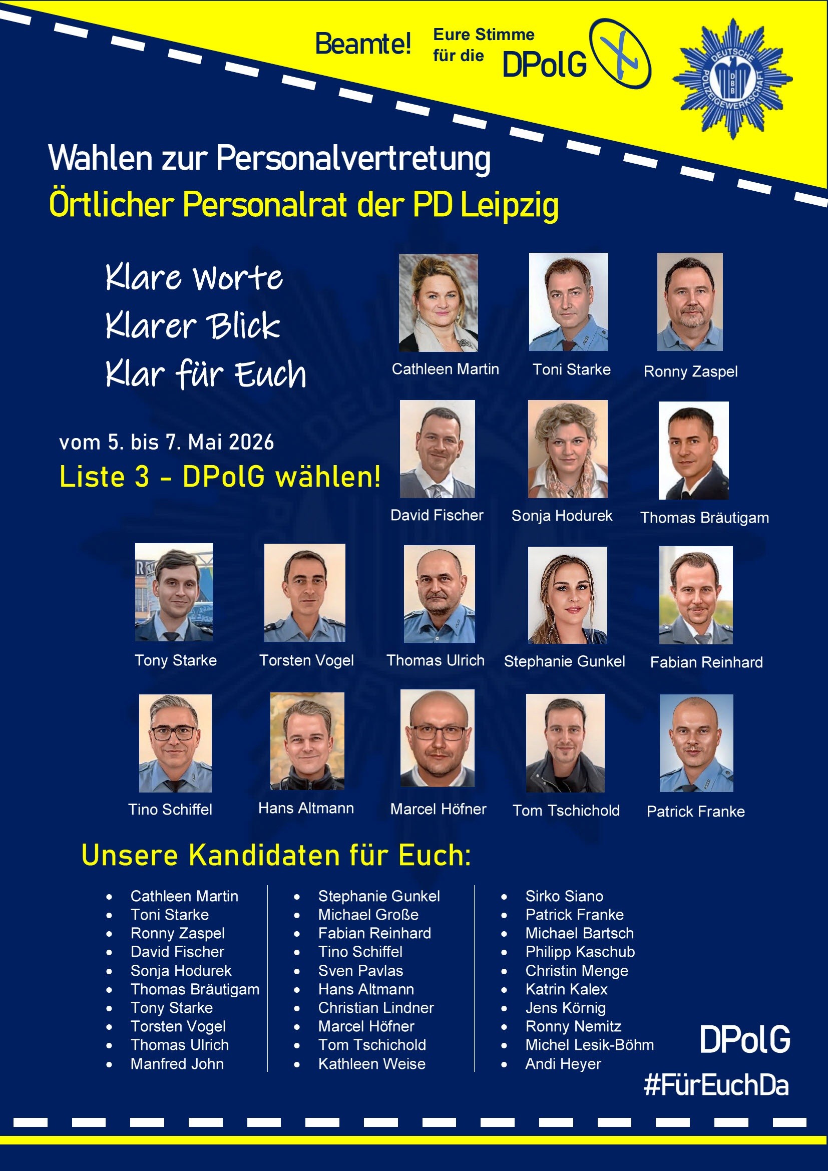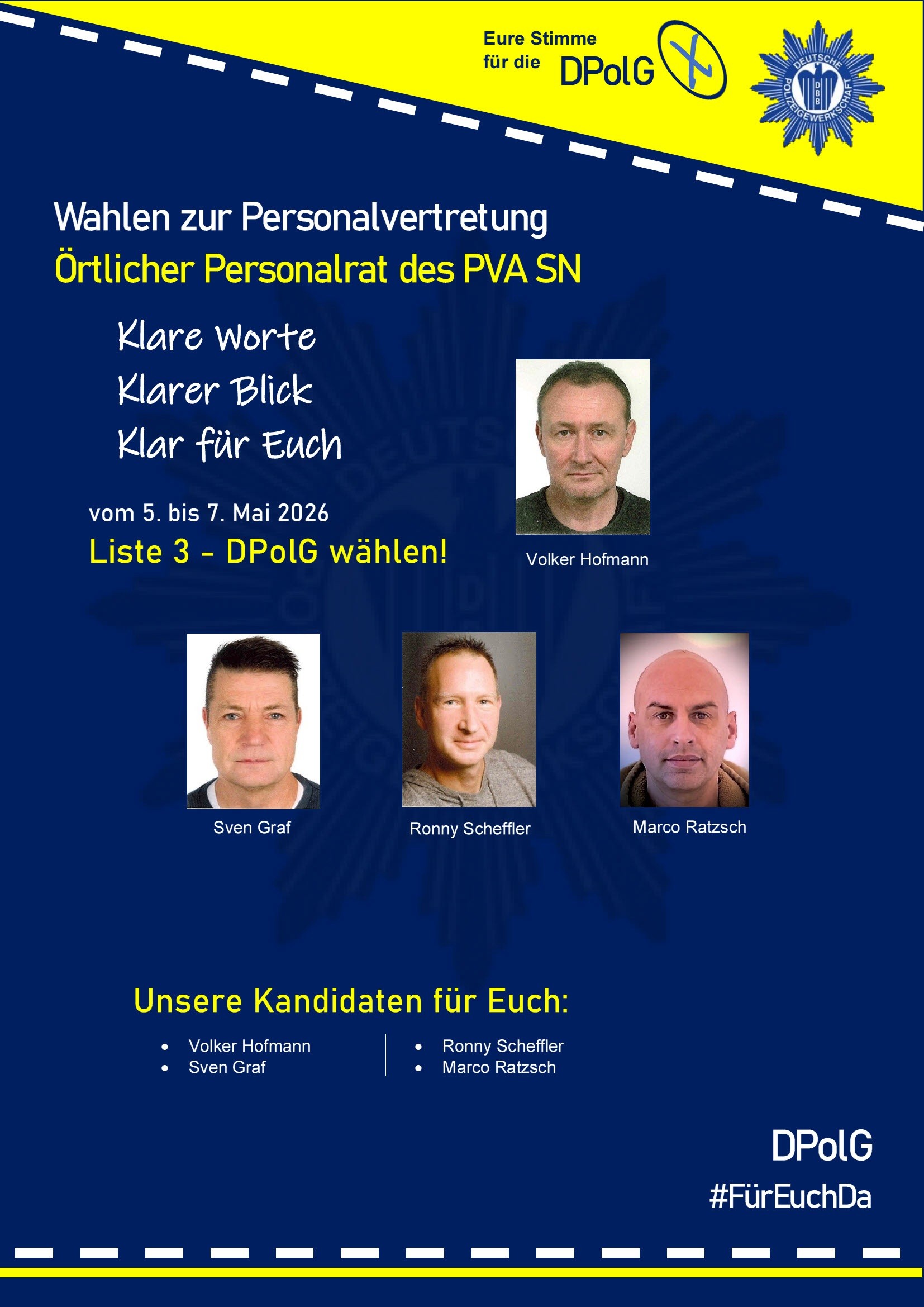 In diesem Jahr finden sie nun gem. § 27 SächsPersVG in den Dienststellen der Sächsischen Polizei planmäßig statt. Es werden alle fünf Jahre die Personalvertretungen neu gewählt. 2021 fanden die letzten Wahlen statt und entsprechend dieses § 27 SächsPersVG finden sie nun zwischen dem 1. März und dem 31. Mai dieses Jahres statt. Bei uns werden gewählt: